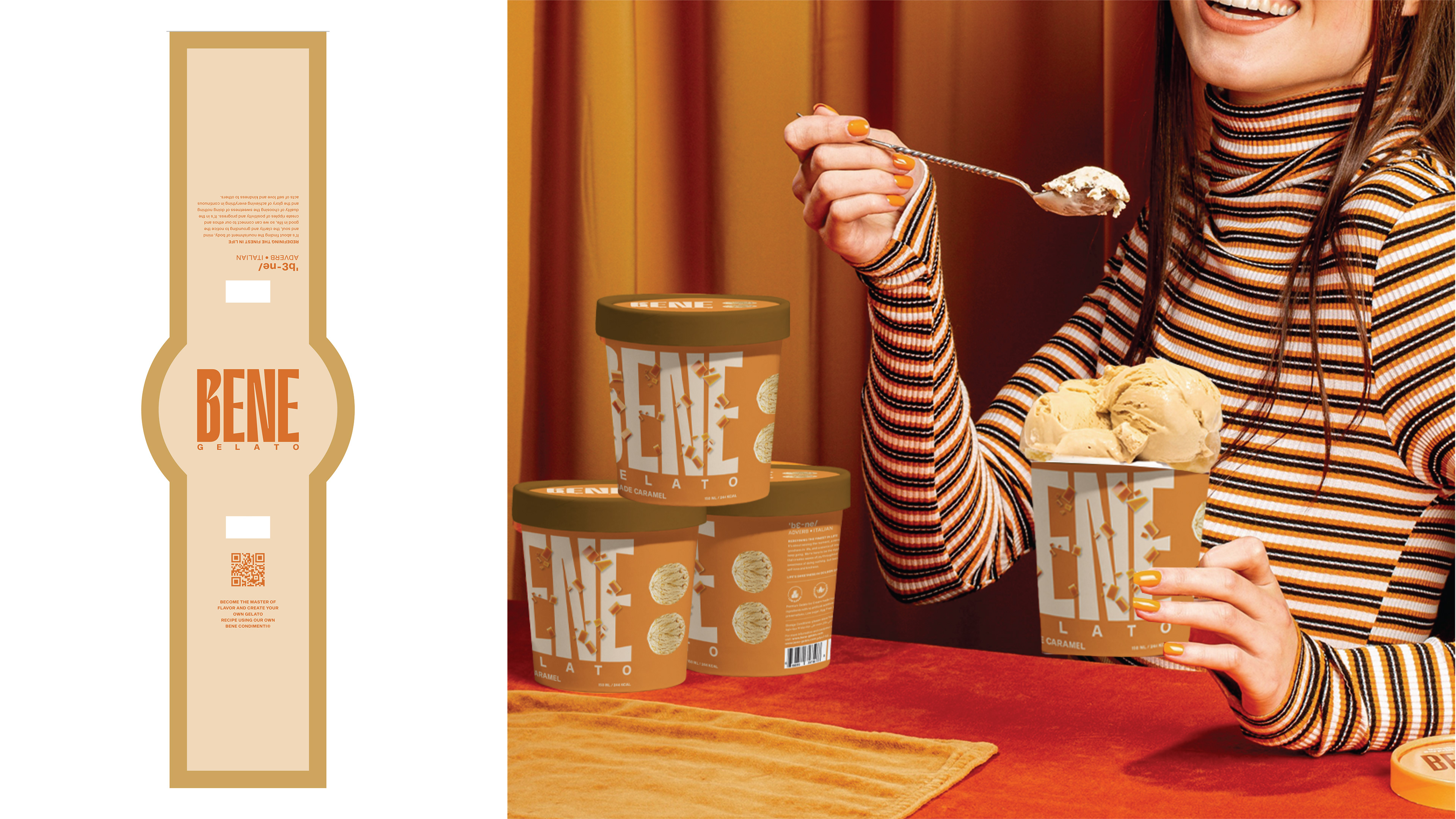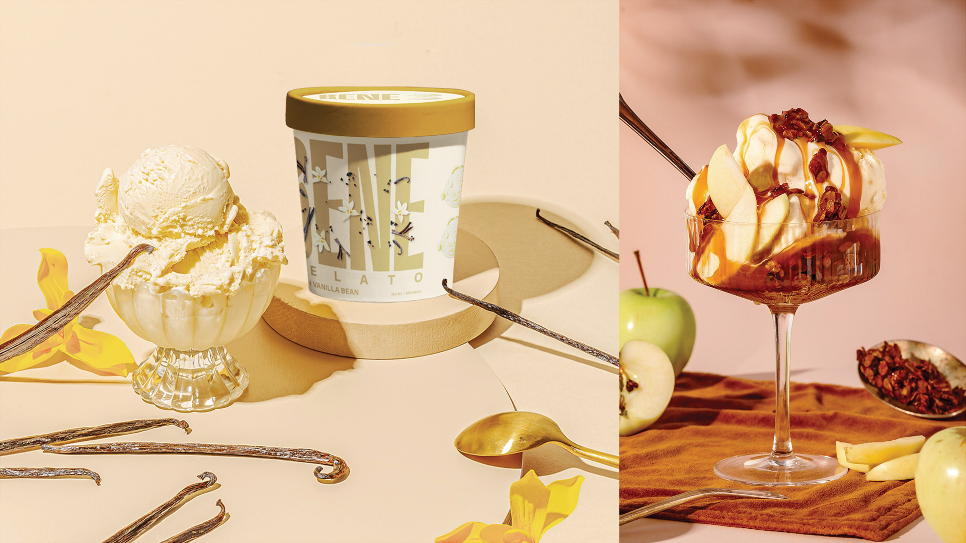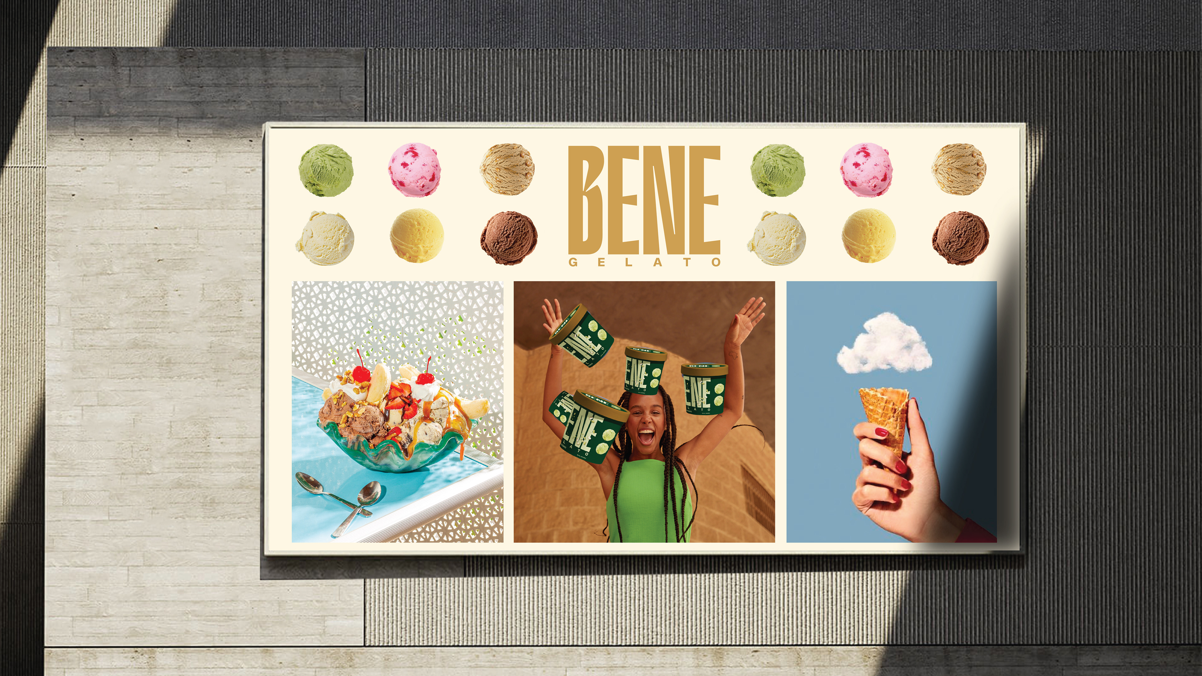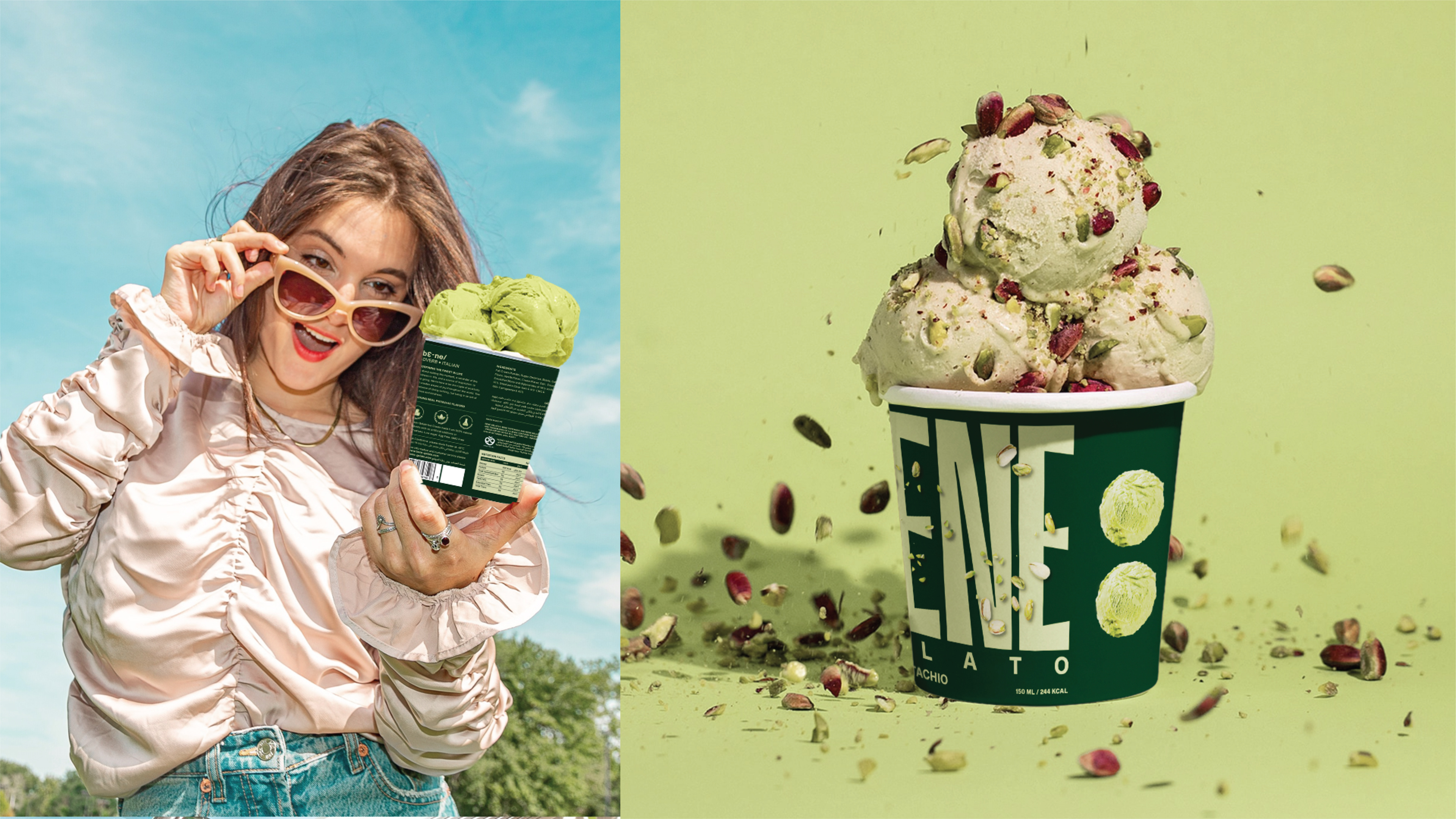 Bene Gelato is an FMCG brand offering all-natural, super-premium gelato crafted from the finest ingredients for those who appreciate life’s finer pleasures. Rooted in purity and elevated flavour experiences, the brand identity revolves around the colon symbol, used as a visual device to express what it means to experience Bene. This distinctive element creates strong shelf ownability and instant recognisability. With a bold logo and a vibrant colour system that differentiates each flavour, Bene celebrates refined taste through a confident and memorable visual language.